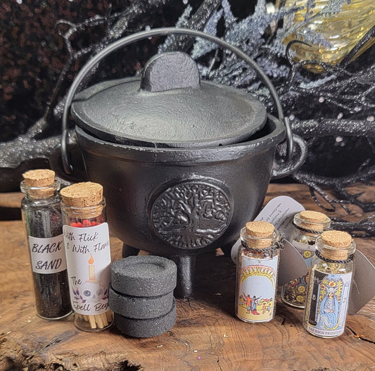 Cast Iron Cauldron Starter Witch kit - Beginner Spell kit Cast Iron with Crystals & Spell Tools