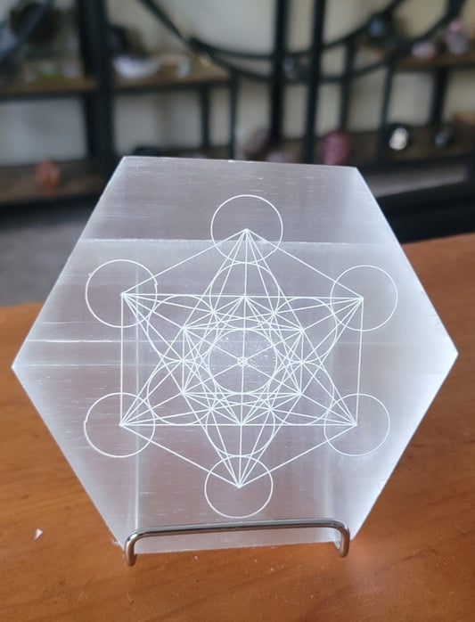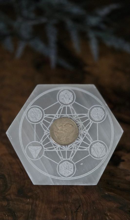 Selenite Sacred Geometry Hexagon Crystal Grid-Energy Charging & Spiritual Alignment Plate