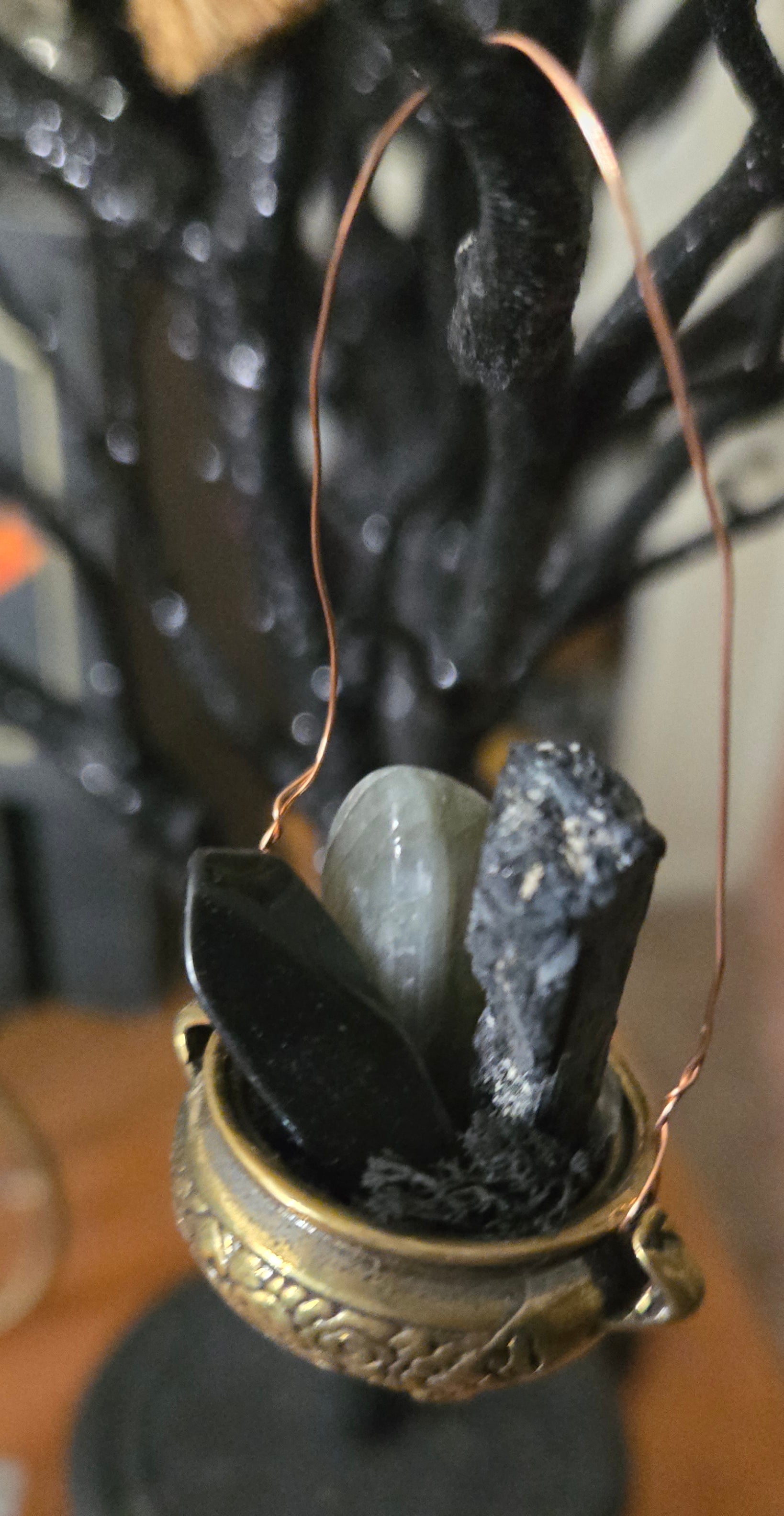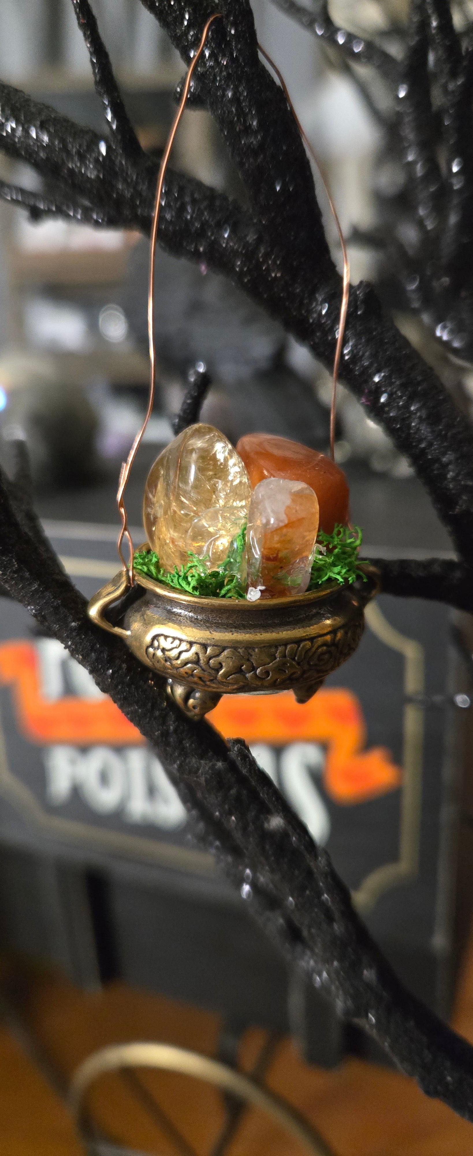 Brass Cauldron Crystal Ornament – Witchy Yule Tree Décor