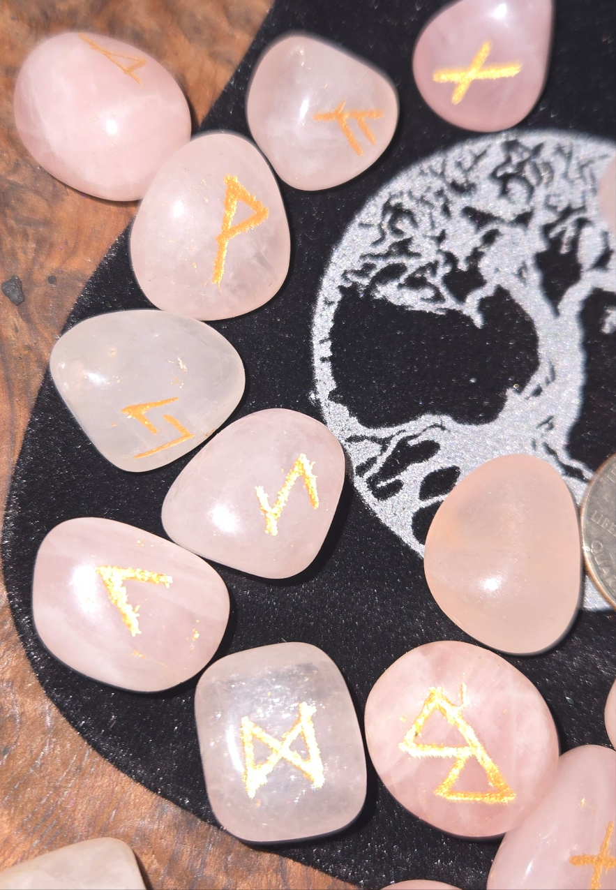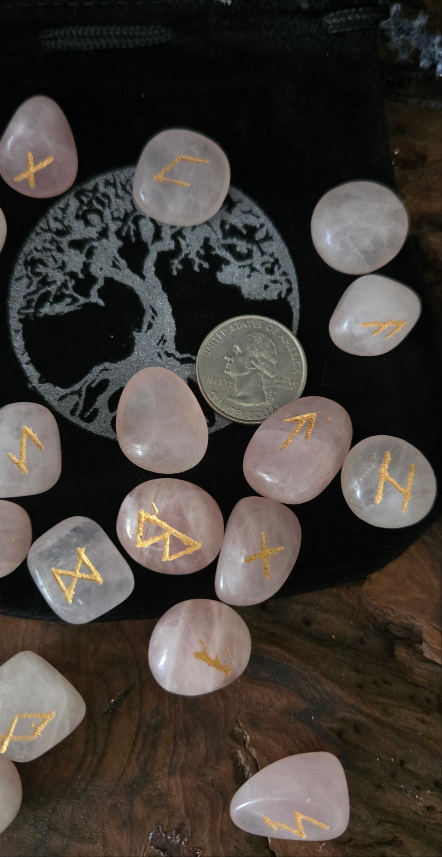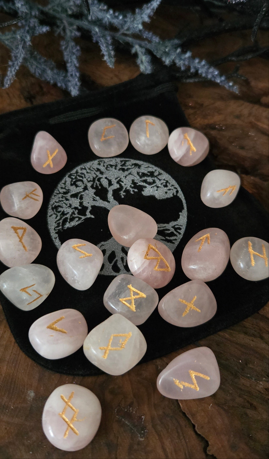 Rose Quartz Crystal Runes set-Crystal Rune Stones for Love & Divination