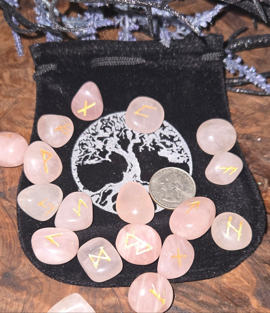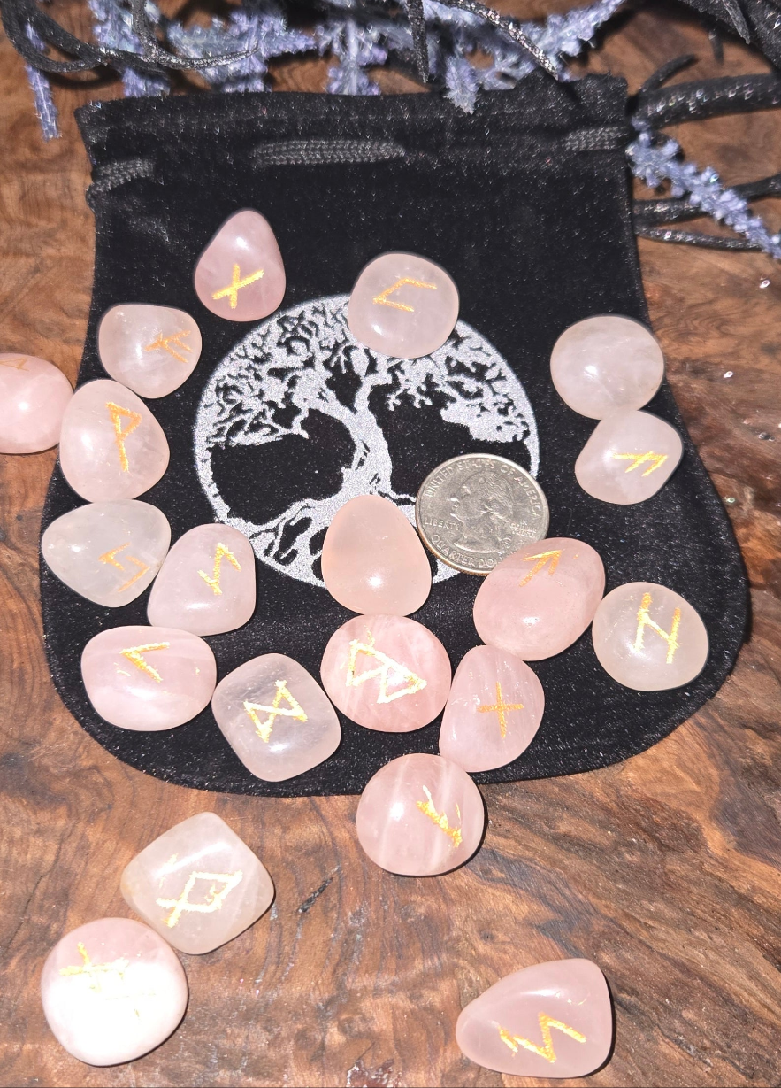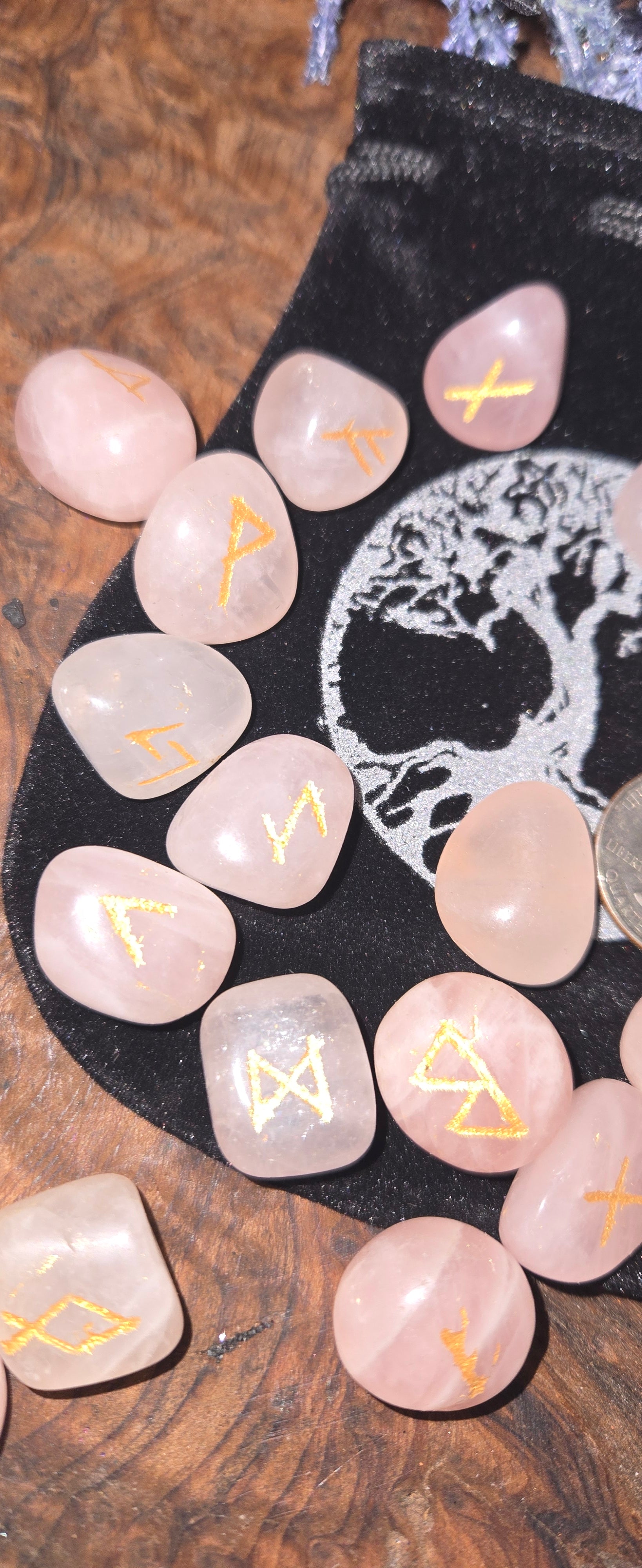 Rose Quartz Crystal Runes set-Crystal Rune Stones for Love & Divination