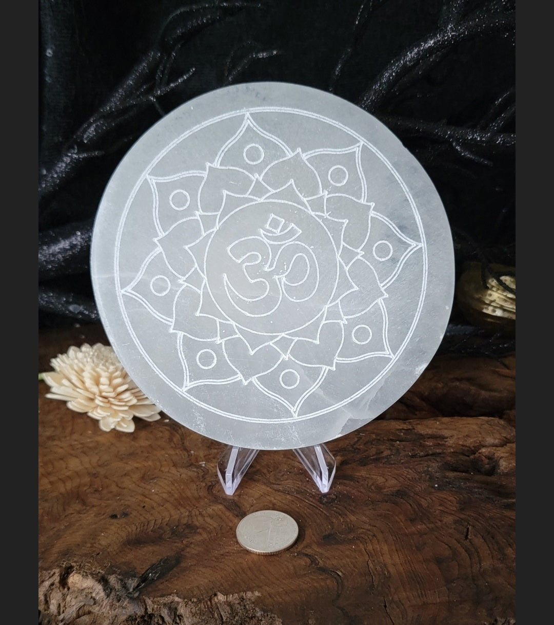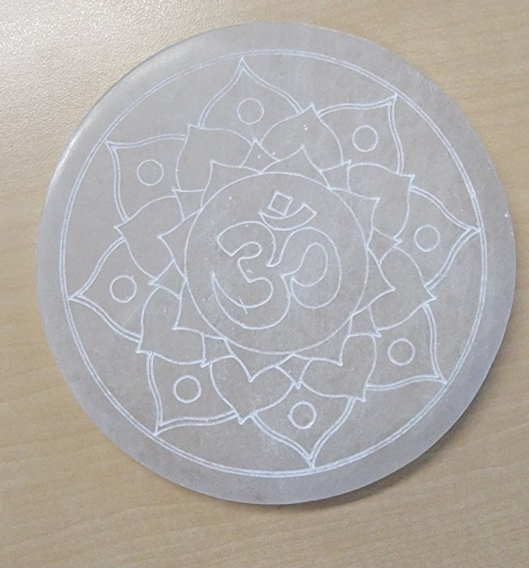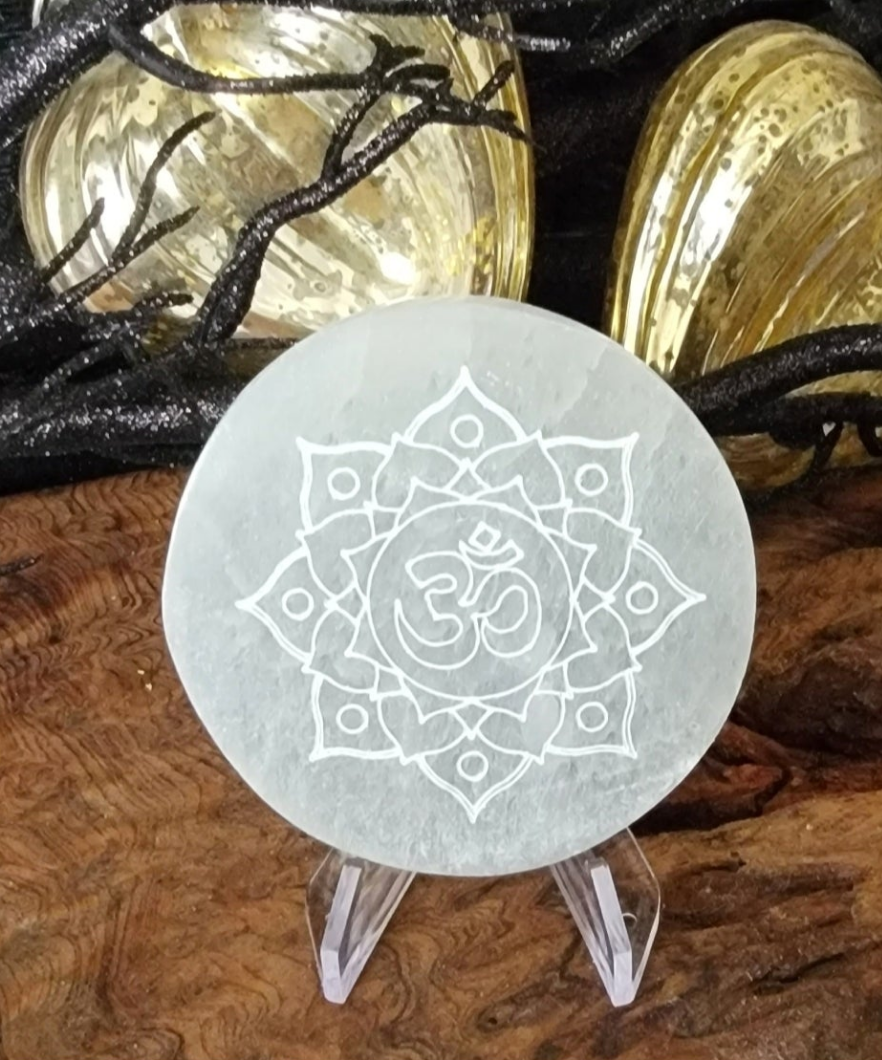 Selenite Lotus Flower Om Charging Plate - Crystal Charging & Energy Healing Disk