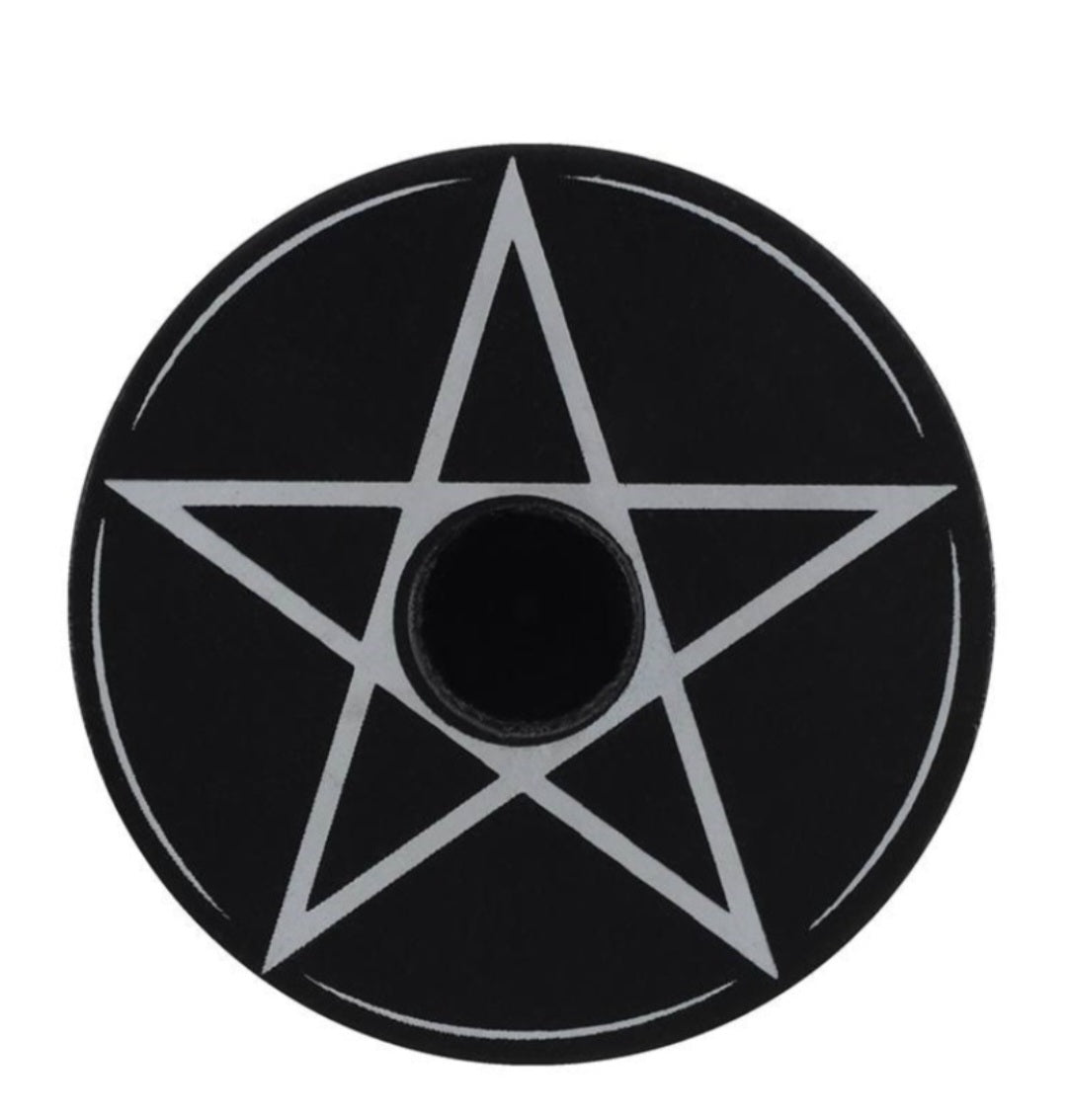Enhance your spellwork with this Pentagram Chime Candle Holder, specially designed for standard 4" spell candles (also called chime candles). Featuring a classic pentagram or pentacle symbol, this altar tool grounds your intention and adds symbolic power to any magical practice.