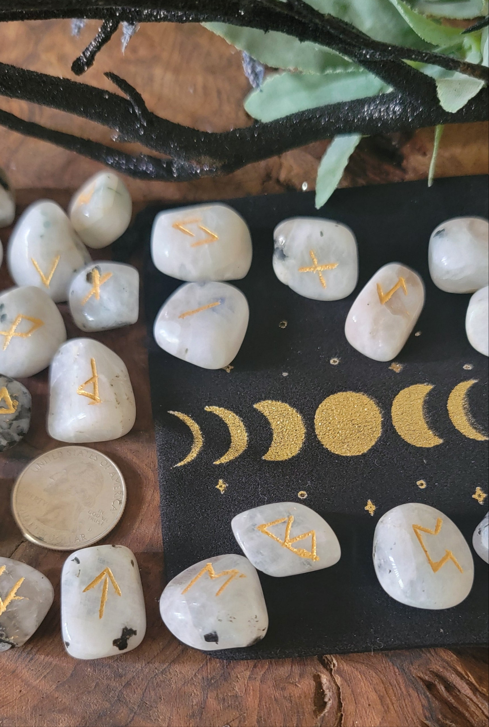 Rainbow Moonstone Crystal Runes Set- Crystal Rune Stones for Intuition & Divination