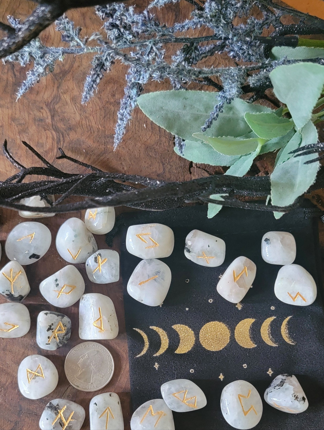 Ideal for witches, spiritual seekers, and rune readers, this set combines ancient Norse symbols with the gentle magic of moonstone to support your metaphysical practice and personal growth.