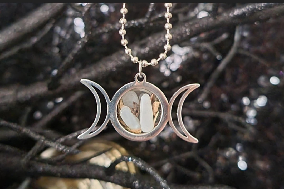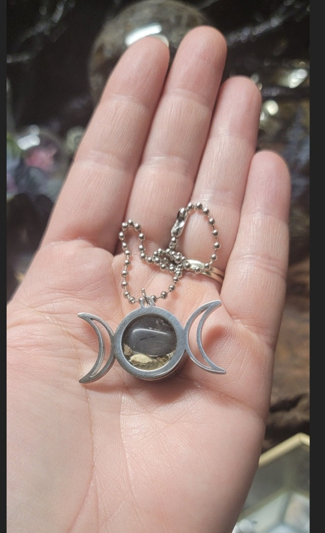 Empower your daily drives with protection and divine feminine energy using this Triple Moon Travel Protection Car Charm. Handcrafted and spelled with intention, this rearview mirror amulet combines the symbolic strength of the Triple Moon Goddess with the energetic support of crystals and herbs to ensure every journey is safe, grounded, and spiritually aligned.