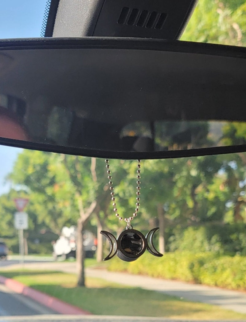 Triple Moon Travel Protection Charm for Rear View Mirror – Spelled Car Amulet with Crystals & Herbs