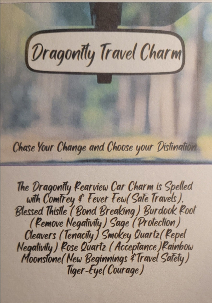 Bring a sense of peace and protection to every drive with this Dragonfly Travel Protection Charm, a handmade rearview mirror amulet created to shield you on the road. Featuring a symbolic dragonfly, this charm represents transformation, guidance, and safe passage, making it an ideal talisman for daily commutes, long road trips, or new journeys.