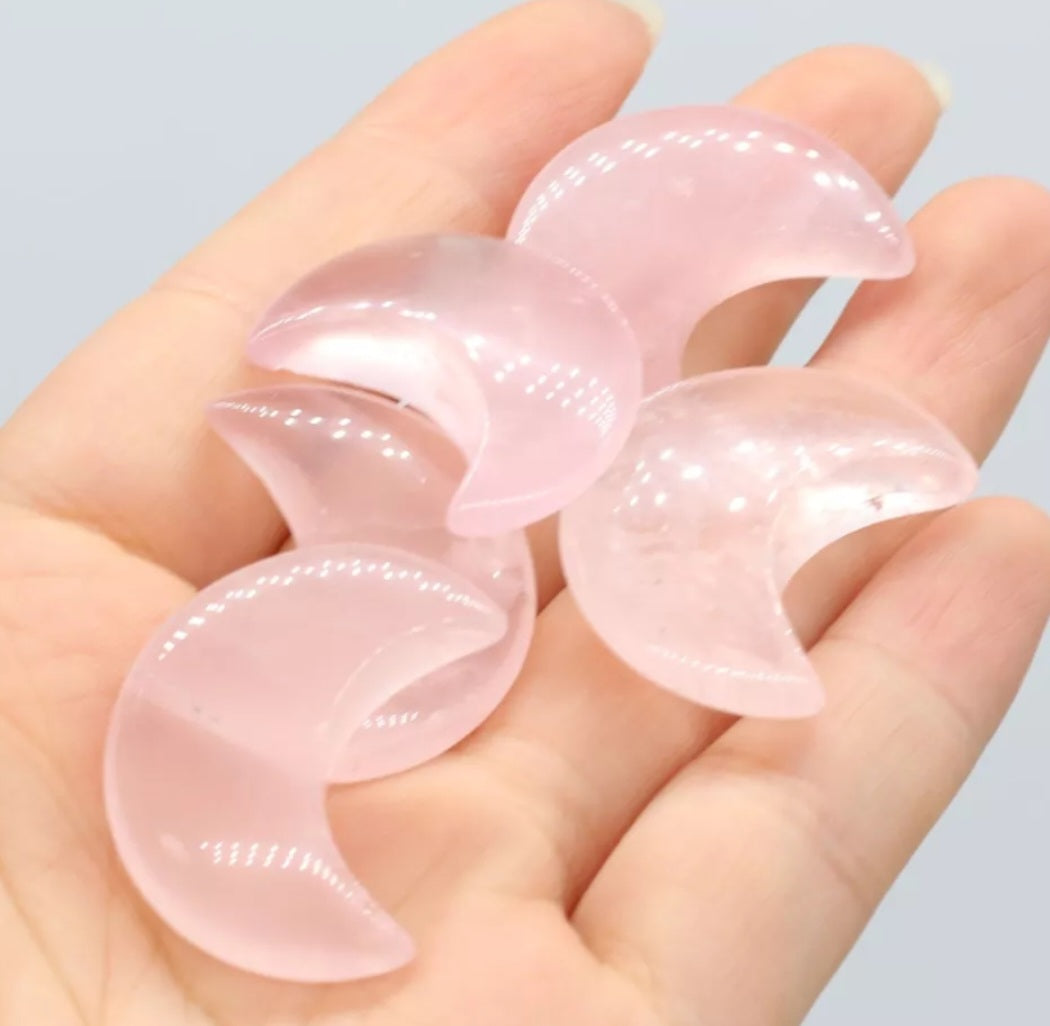 Crescent moon carvings (1" appox.): Labradorite, Black Labradorite or Rose Quartz