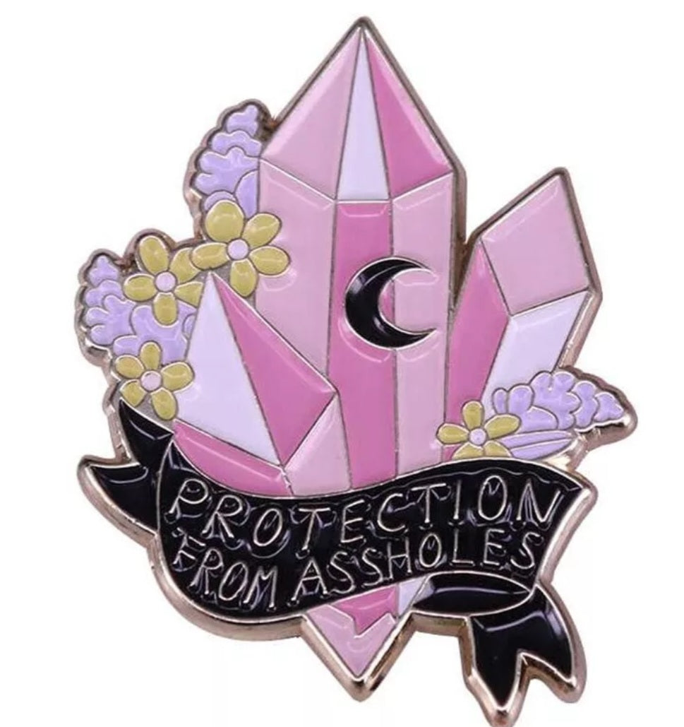 Protection From A$$holes Enamel Pin – Pink Crystal Witchy Pin