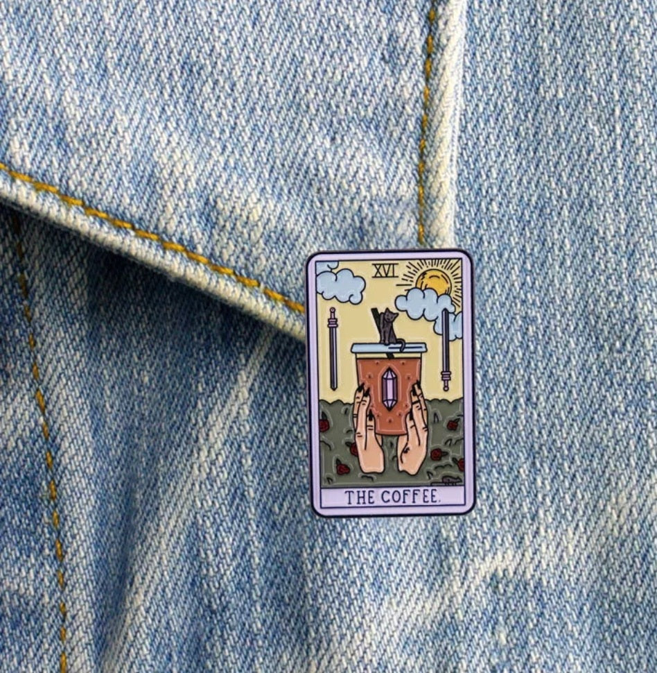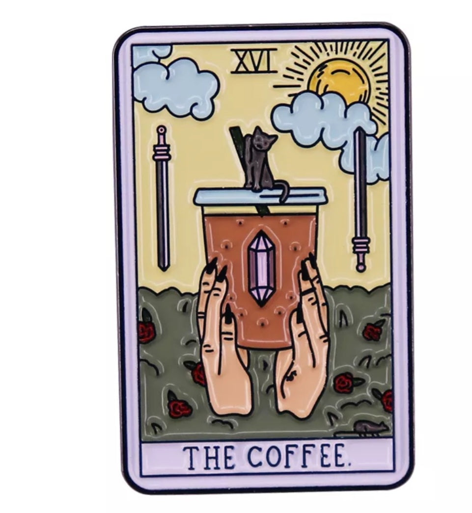 The Coffee Tarot Enamel Pin – Witchy Coffee Lover Tarot Pin