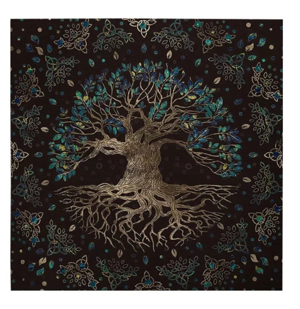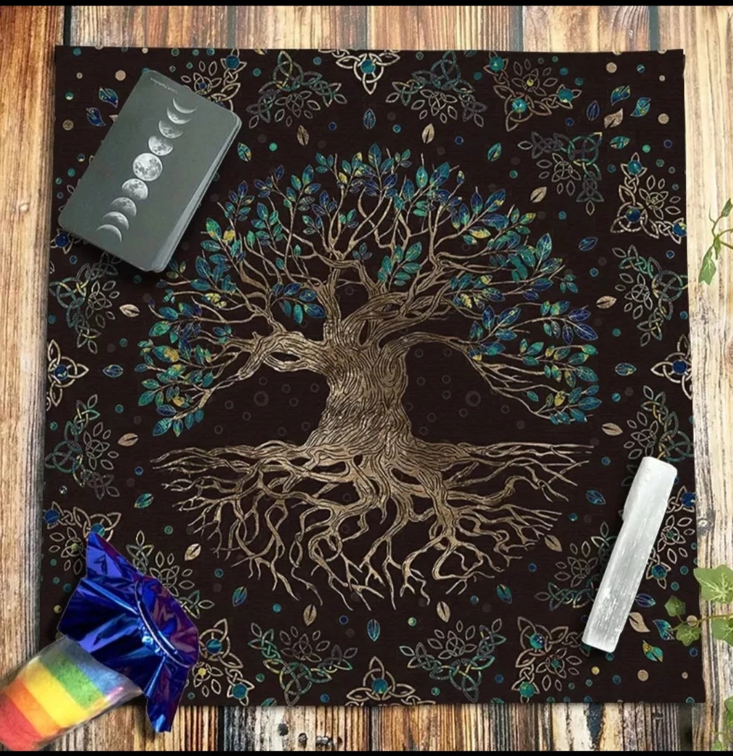 Elevate your spiritual practice with this Tree of Life Tarot Cloth, a beautifully designed altar tapestry apprix 31" x 31"perfect for tarot spreads, crystal grids, pendulum work, and sacred rituals. The Tree of Life symbolizes interconnectedness, growth, and divine wisdom, making it the perfect backdrop for intention setting and divination.