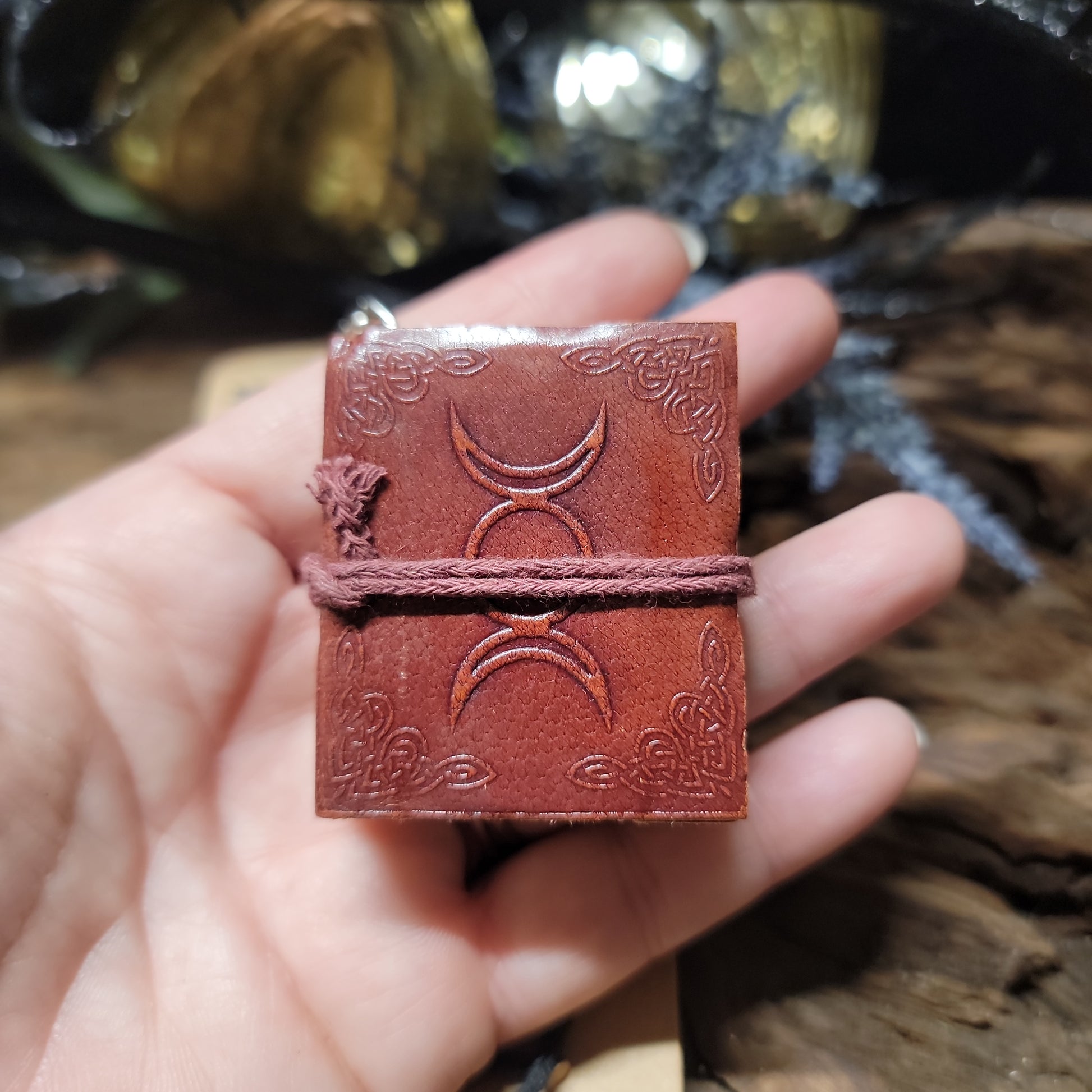 Carry your magic everywhere with this Leather Mini Spellbook Keychain – a miniature grimoire wrapped in genuine leather, embossed with the sacred Triple Moon Goddess symbol. Perfect as a witchy keychain, portable spellbook, or pocket Book of Shadows, this enchanting charm is ideal for on-the-go intentions, travel altar kits, or spiritual protection. Whether you're a beginner witch or a seasoned practitioner, this handcrafted mini spellbook adds mystical flair to your everyday essentials. Great for gifts, coven sisters, or sacred travel companion.