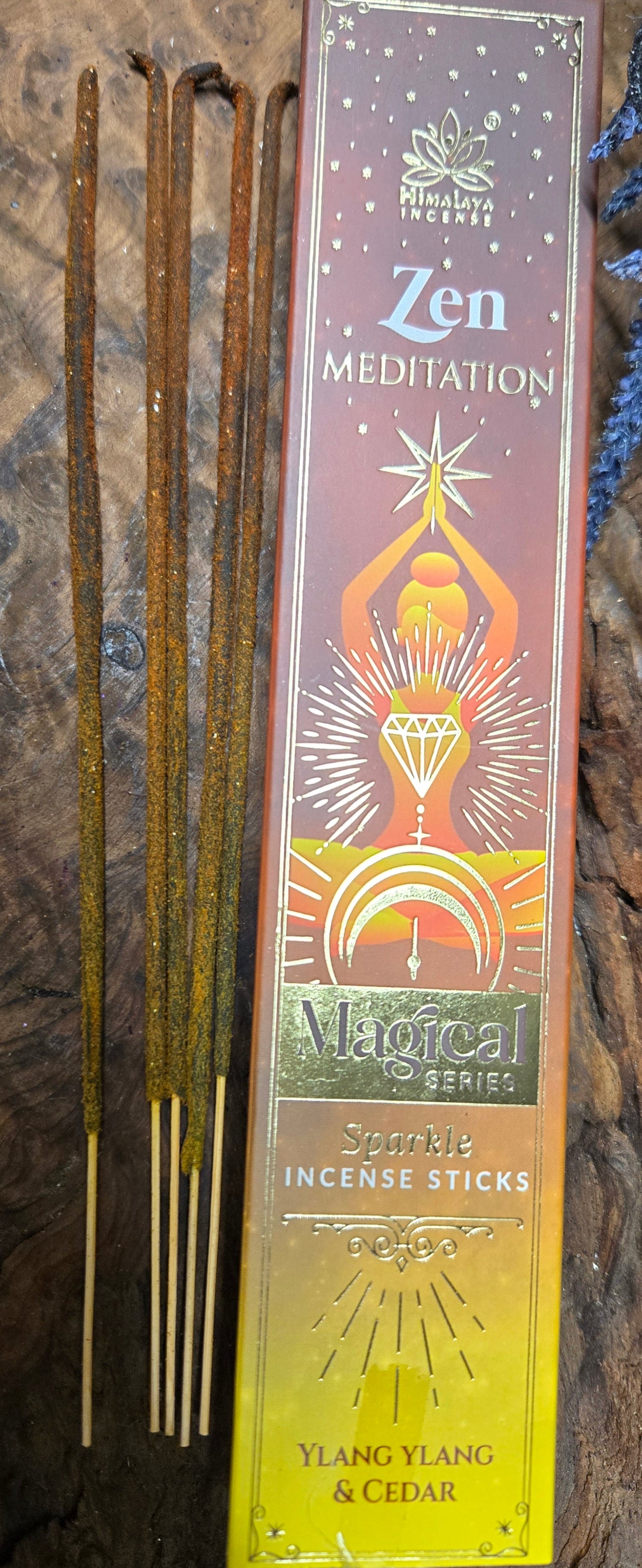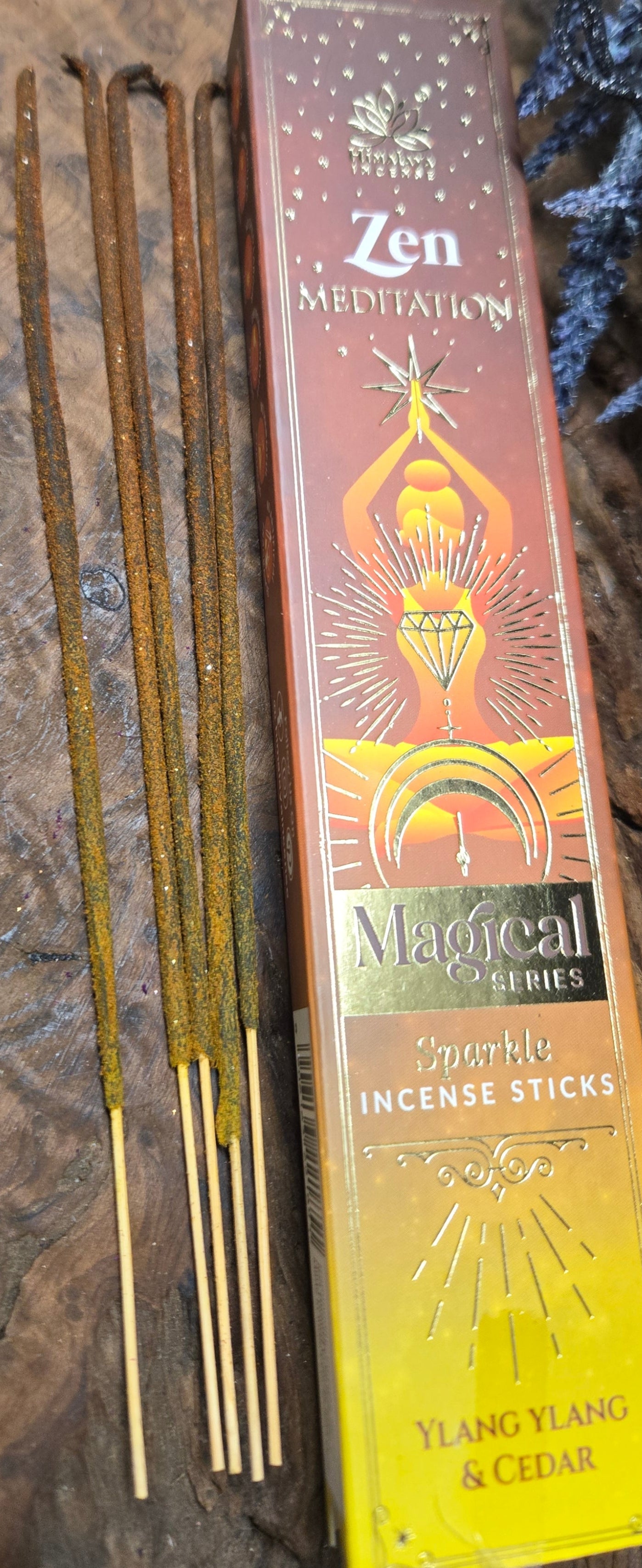 Zen Meditation Incense Sticks – Ylang Ylang & Cedar | Yellow & Brown with Golden Glitter | Calm & Grounded Aromatherapy